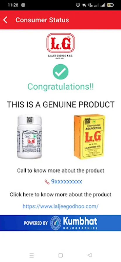 Consumers can either scan the code / enter the code to check the product authenticity.