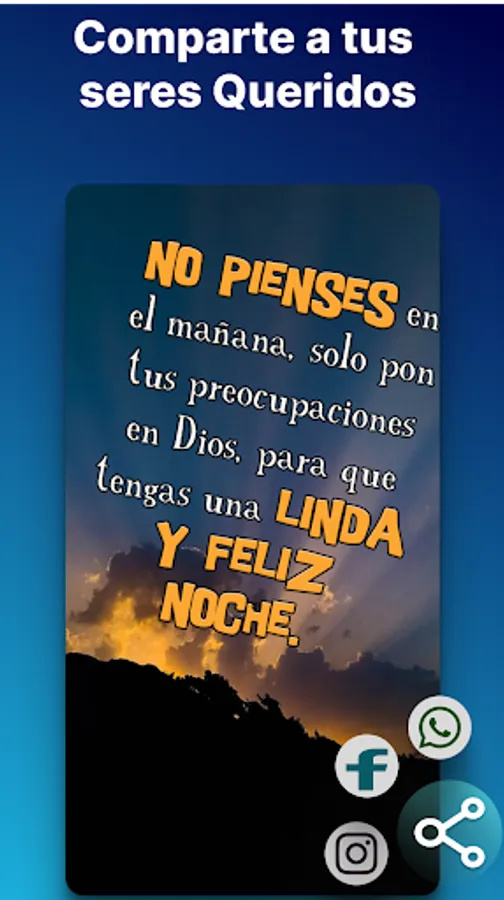 Tenemos a tu alcance una aplicación fácil de usar y que en un solo clic puedes compartir y descargar frases de palabras y saludos de buenas noches con Dios y que te servirán para dedicárselas a las personas que amas.