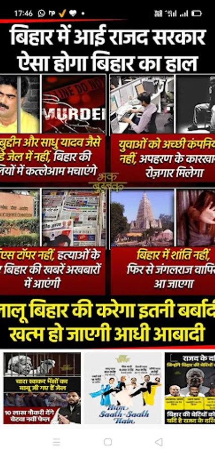 अगर राजद सत्ता में आया तो राजद के राक्षस सक्रिय होंगे। राजद पार्टी जो है सत्ता में आने के लिए बहुत सारे दावे कर रहे हैं की किसी तरह एक बार सत्ता में आ जाएं सत्ता में आने के बाद यह राजद पार्टी वही काम करेगा जो1990 से लेकर के 2005 जो राजद के लोग बिहार में किए हैं वही फिर करेंगे अभी जनता को गुमराह कर रहे हैं की सत्ता एक बार हाथ में आ जाए |