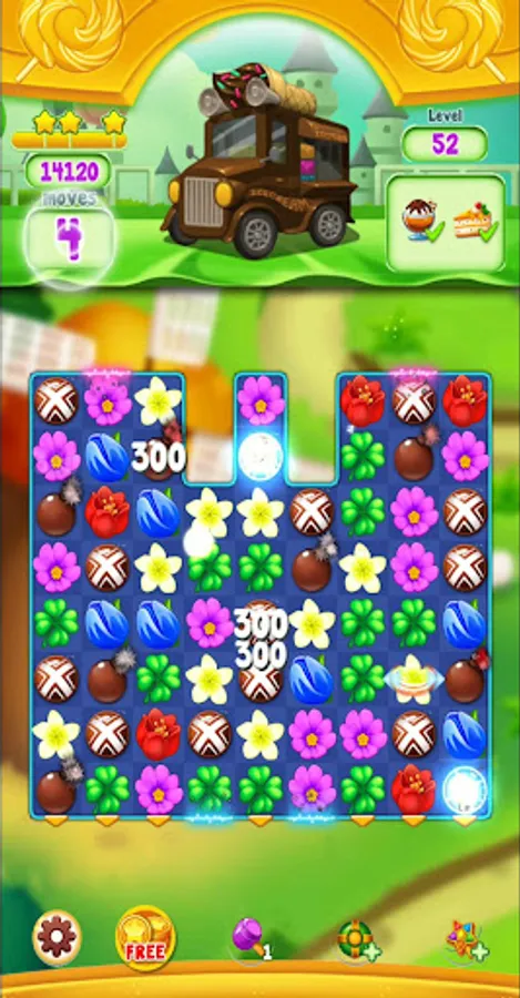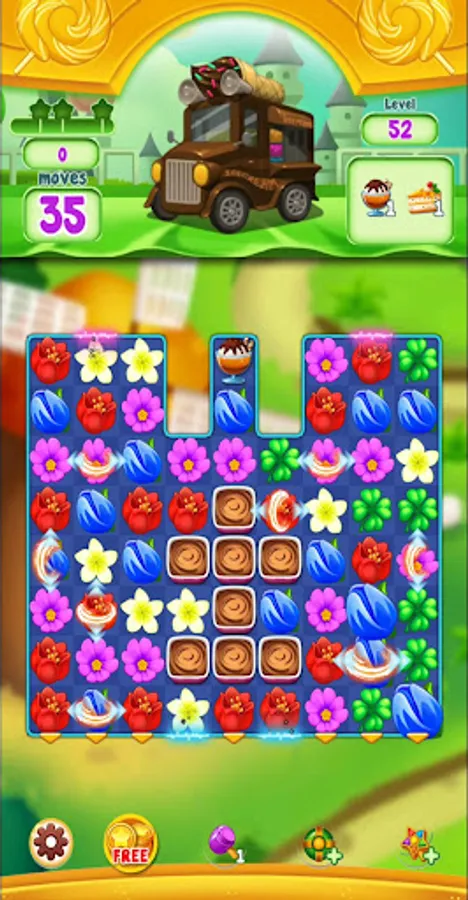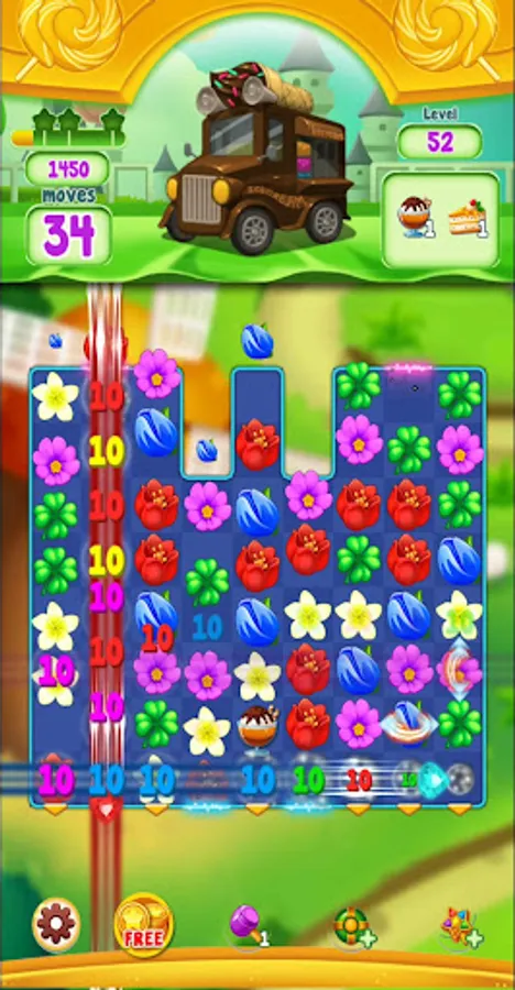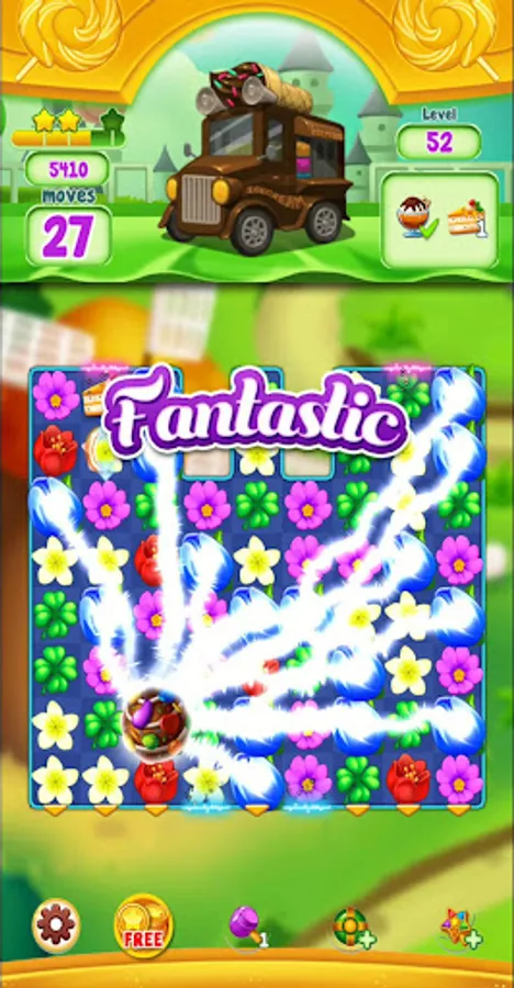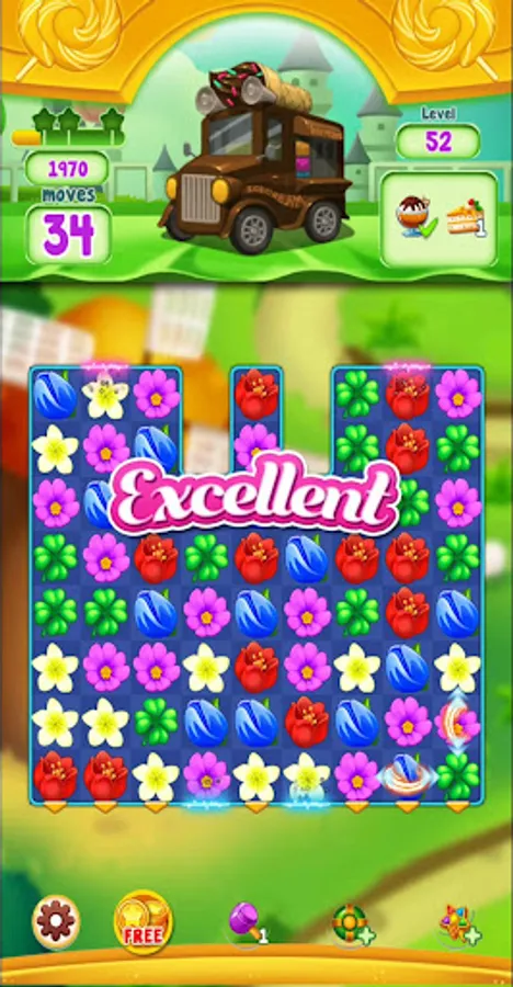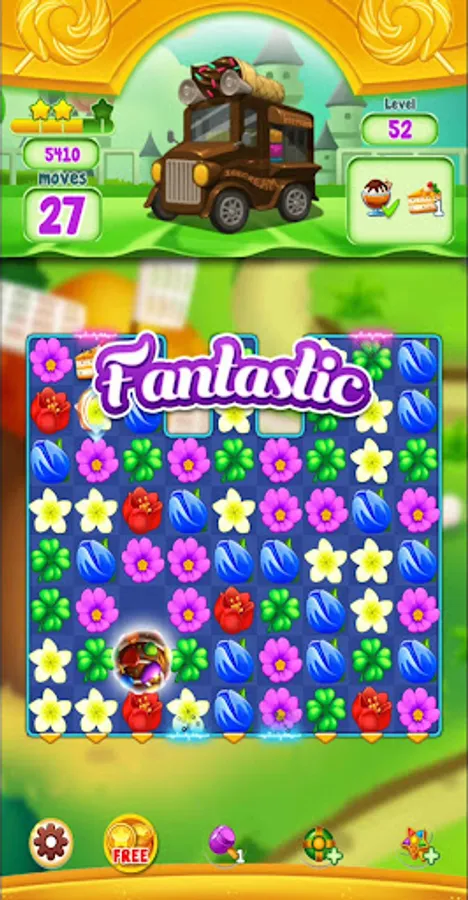 - Every match from 3 Flowers you will accumulate energy for mighty bomb, that helps to destroy obstacles for you.