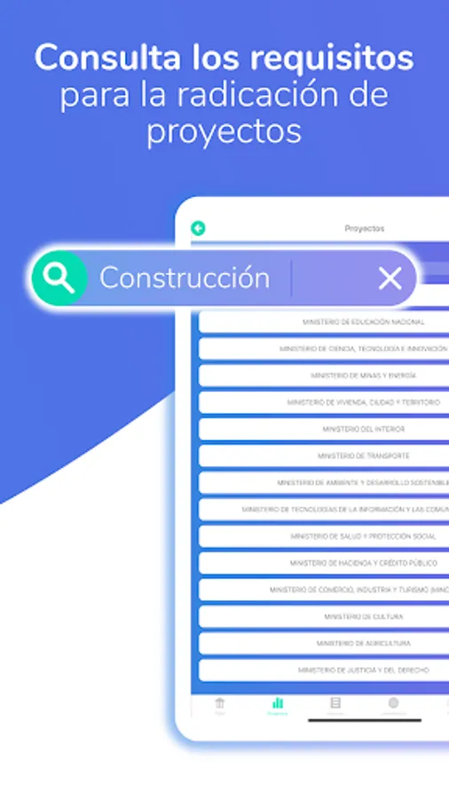 4. Projects: Understanding the needs of the territorial entity for the execution of resources, this tool facilitates access to information on the projects financed by the National, Departmental, SGR, Embassies and international cooperation resources, with their respective requirements of detailed manner so that the municipality has in real time the possibility of participating in the presentation of projects to seek co-financing.