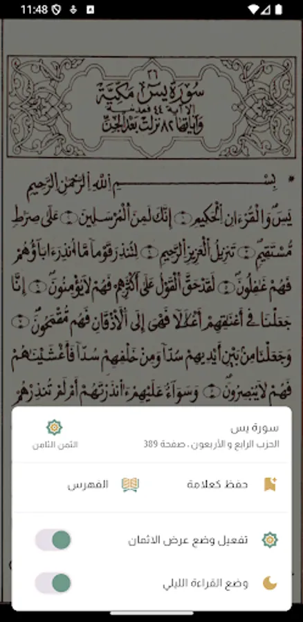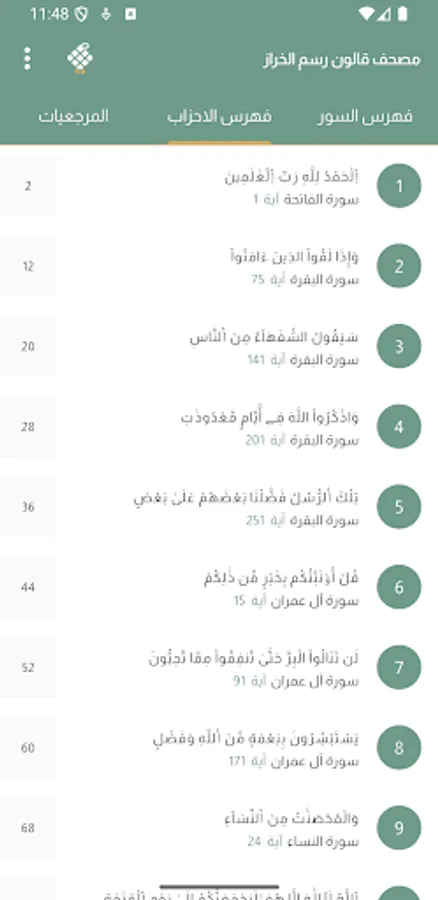 - Indexing of surahs for easy access to any surah directly.