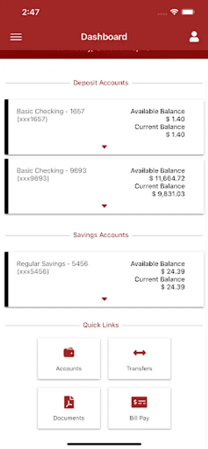**Online customers must first setup transfer and bill pay accounts prior to using these features.
