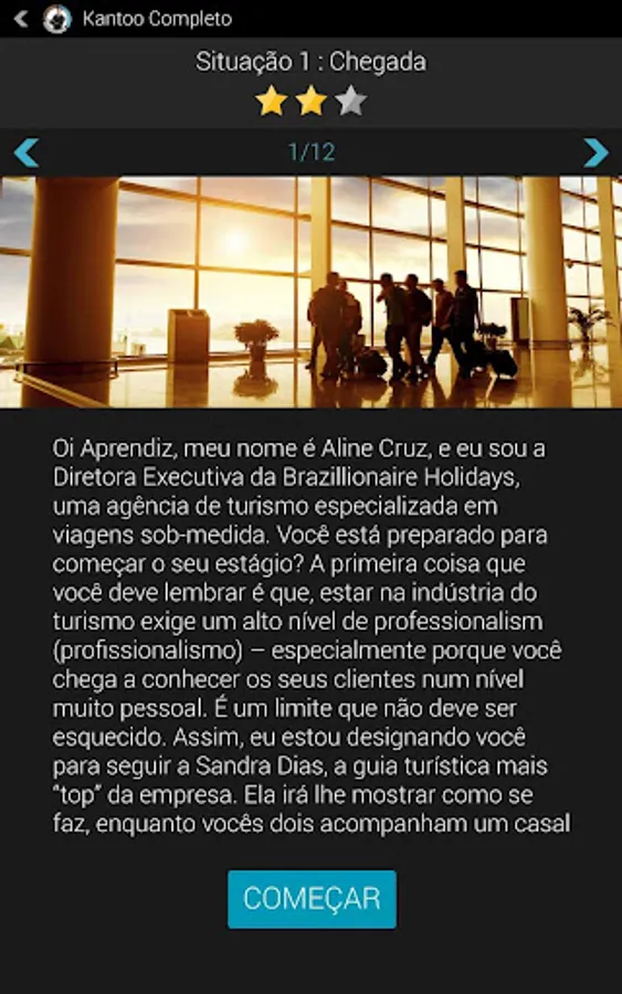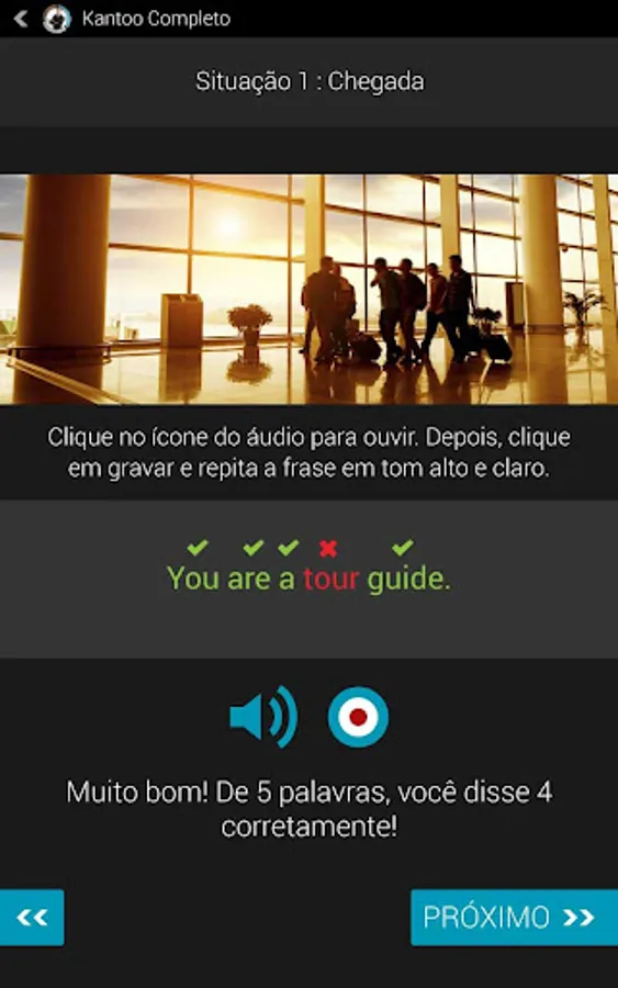 Kantoo Completo is professional English to help you achieve your goals. Learn and practice your English in real-life business situations by becoming the virtual apprentice of an experienced professional in your chosen field: Tourism, Business, or General Interest. With the help of your professional mentor, you will have the chance to hear conversations and practice speaking in a variety of contexts. And with advanced speech recognition built right into the app, you'll get real-time feedback on your English pronunciation!