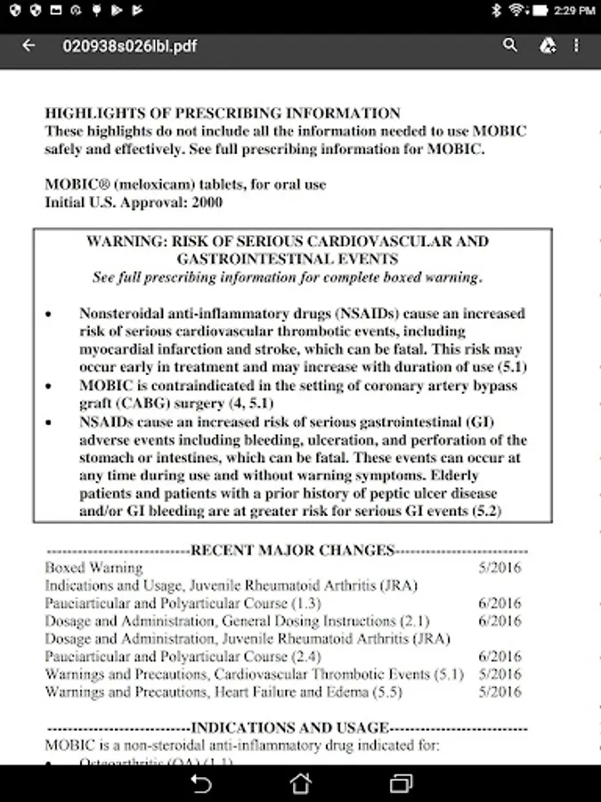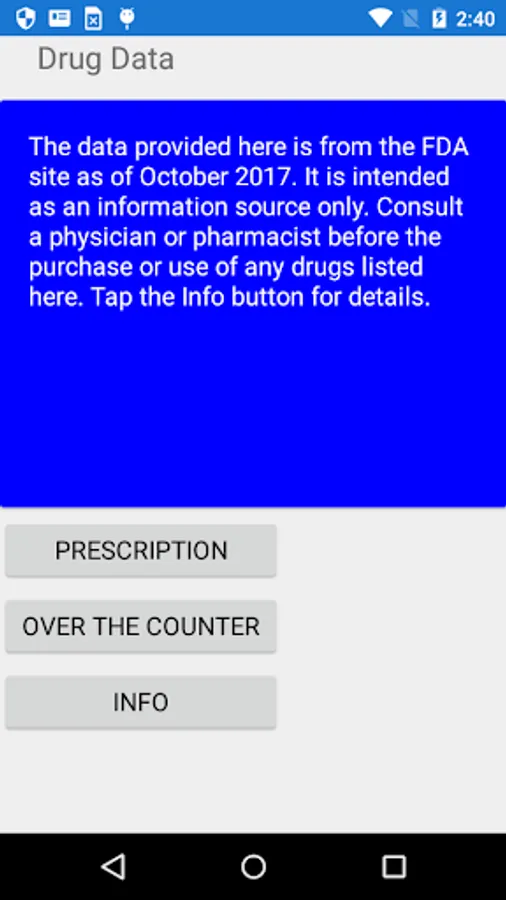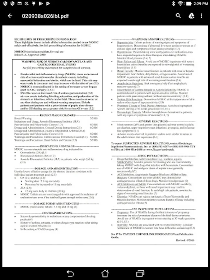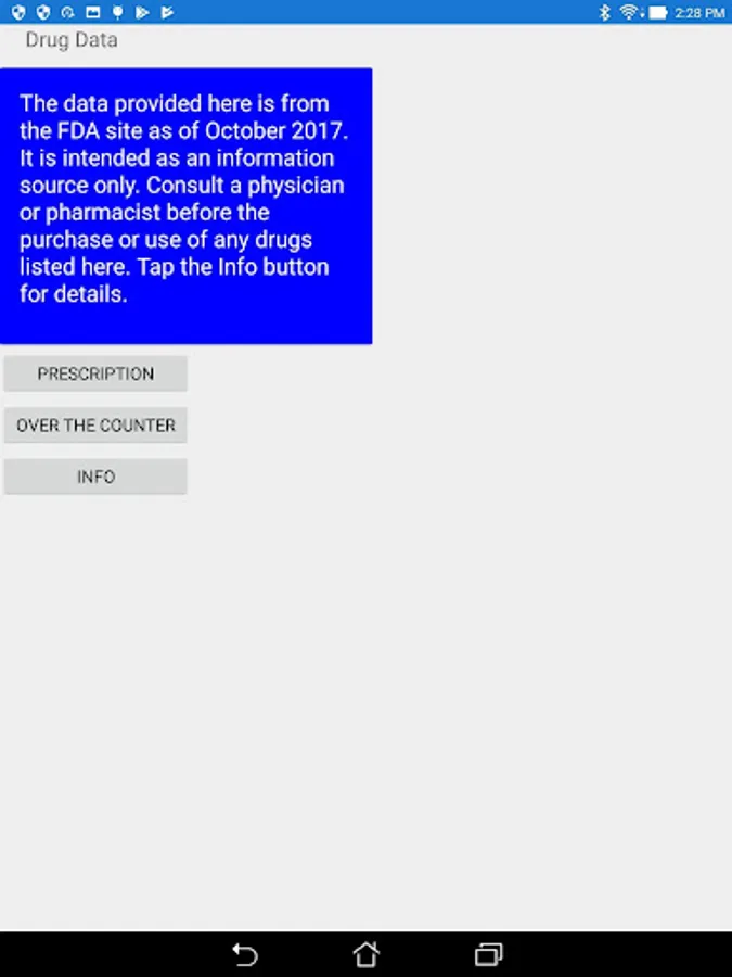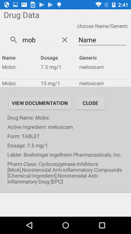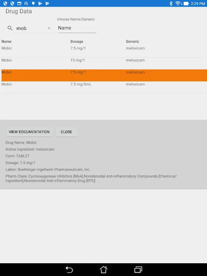 A tap on a drug will produce a popup with information about the drug. If you click on the View Documentation button, in your default PDF viewer you will be able to view detailed and extensive information at the FDA about this drug.