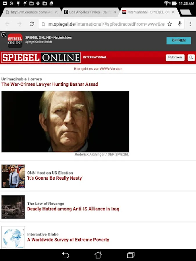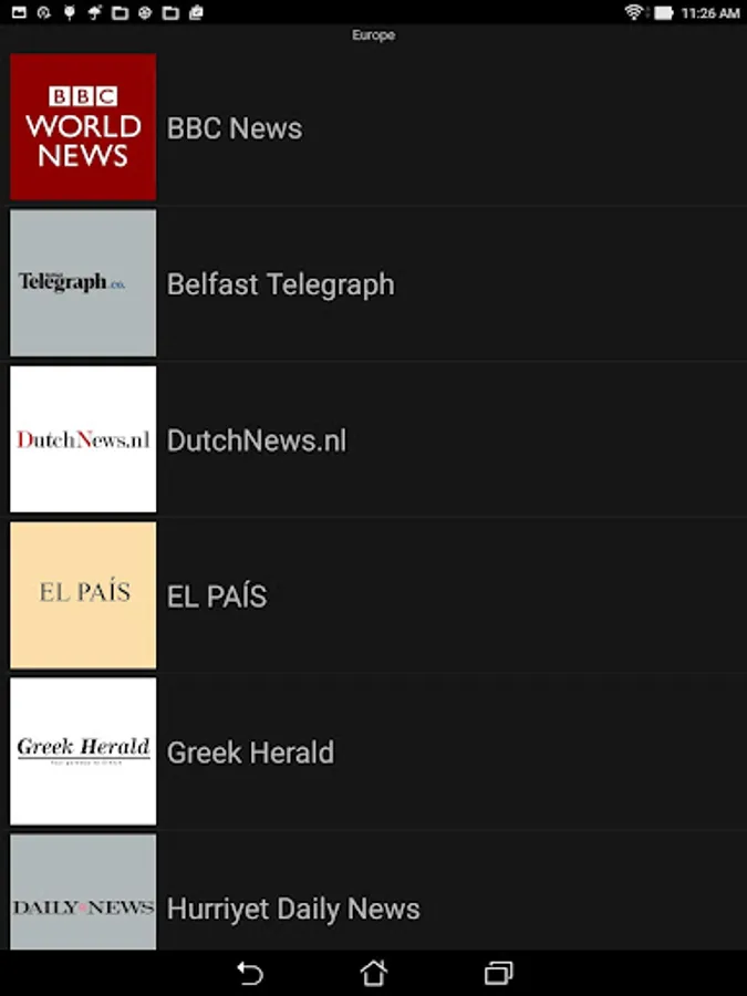 This app allows you read 58 online newspapers from around the world along with a few miscellaneous other news sources. The world is broken down into five regions (North America, Europe, Asia South America and Africa/ Middle East) plus a Miscellaneous category.