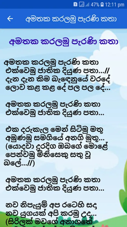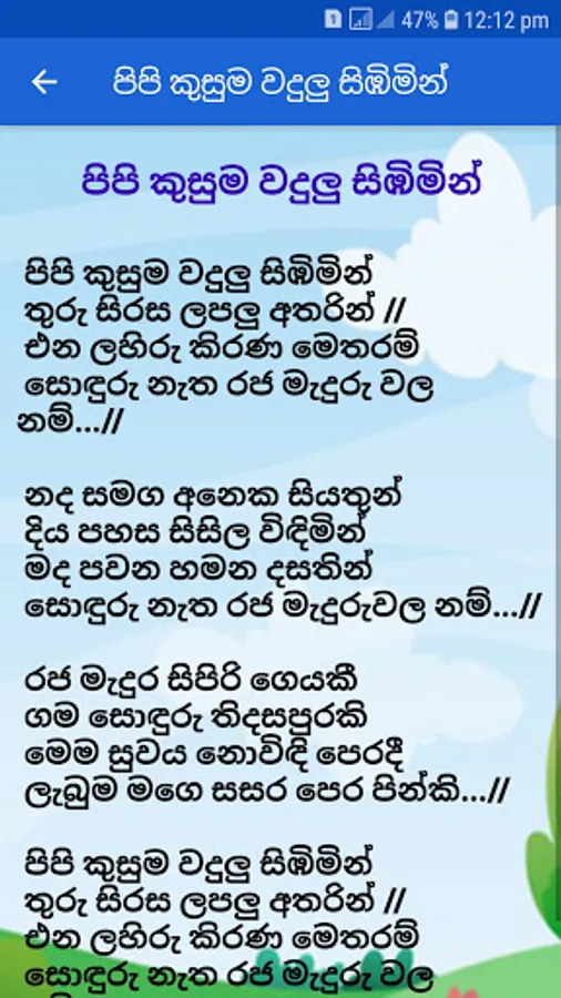 Now you can get a collection of Sinhala kids songs by this app. This app would be helpful for teachers, parents and also those who like to taste the Sinhala kids songs. Some of the features in this app are shown below,