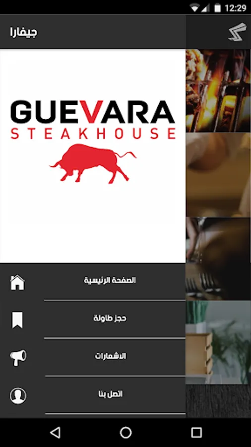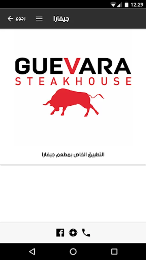 التطبيق الخاص بمطعم جيفارا الكائن في بغداد المنصور بالامكان مشاهدة كافة منيو الطعام في التطبيق و وسائل الاتصال بالمطعم و يمكنك حجز طاولة من خلال التطبيق