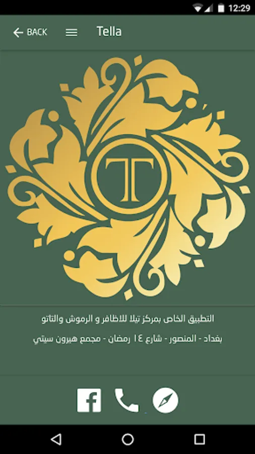 Your application Tila center for nail care and tattoos and eyelashes object in Iraq Baghdad Mansour 14 Ramadan Street Heron City where possible complex watch all the services provided by the Center through the application and appointment and other features