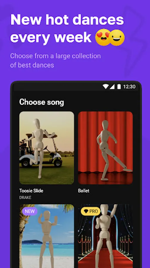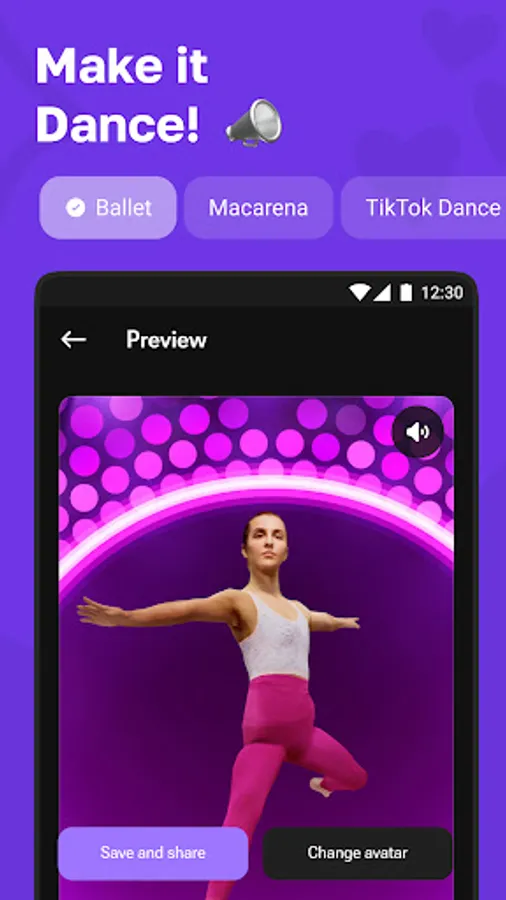 2. Choose a dance from a large collection from all over the world. Your 3D avatar will professionally perform any moves.