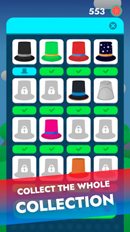 Take the hat in your hands and throw it on the tower from other hats! Reach the highest point, earn on other hats! Gather a complete collection of hats and become the best!