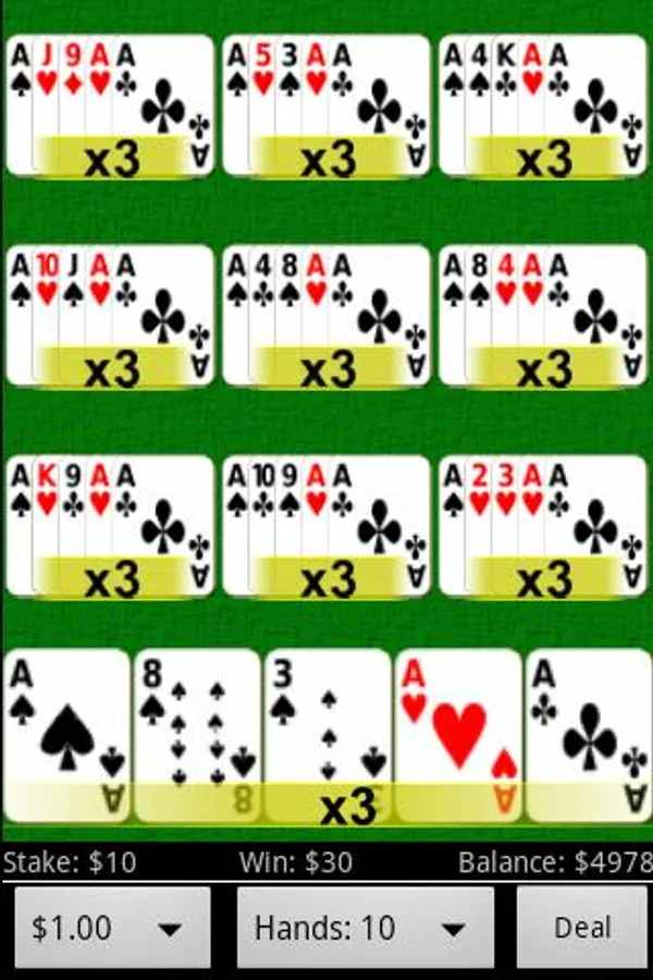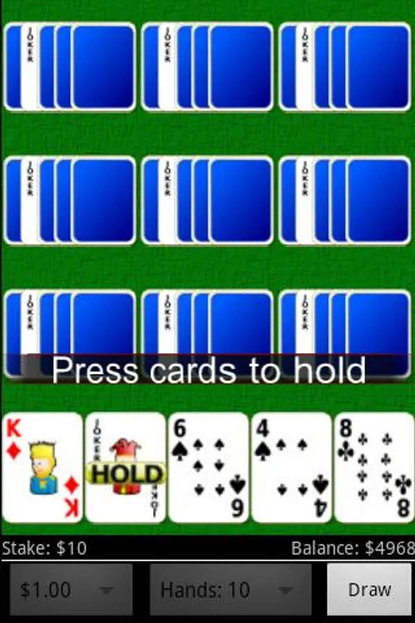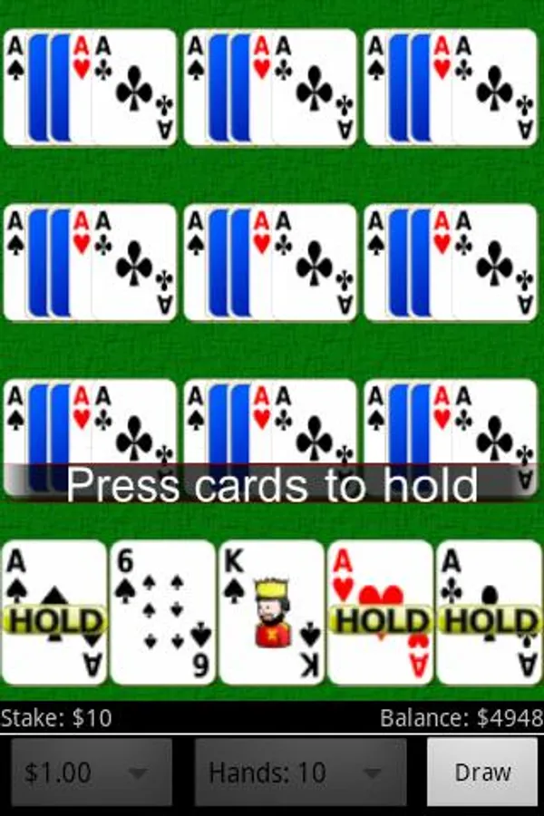Play up to 10 hands of Joker Wild video poker at the same time.