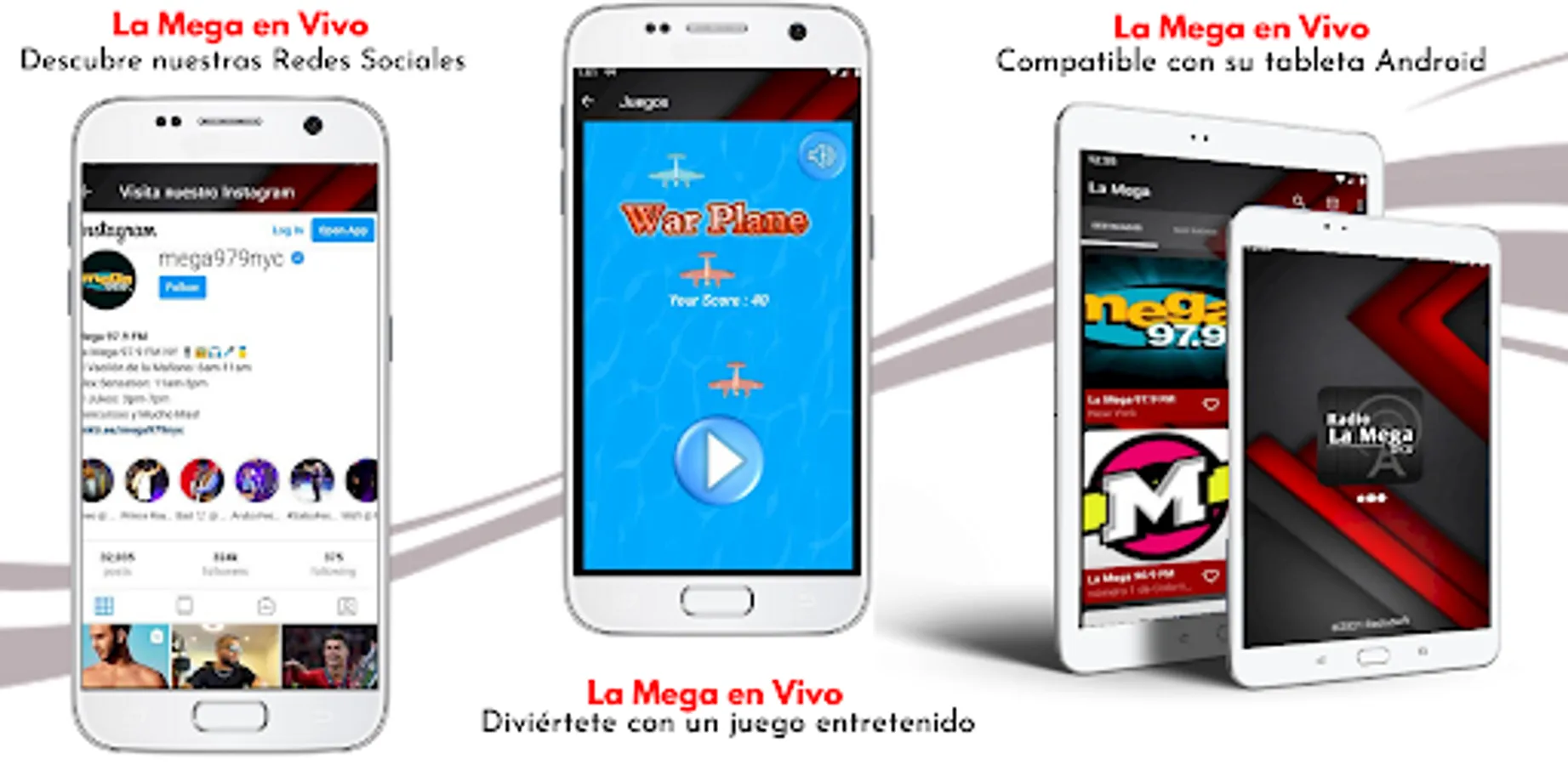 Quick, simple, elegant and easy to use, it offers you access to all the radio stations of the mega 97.9 FM.