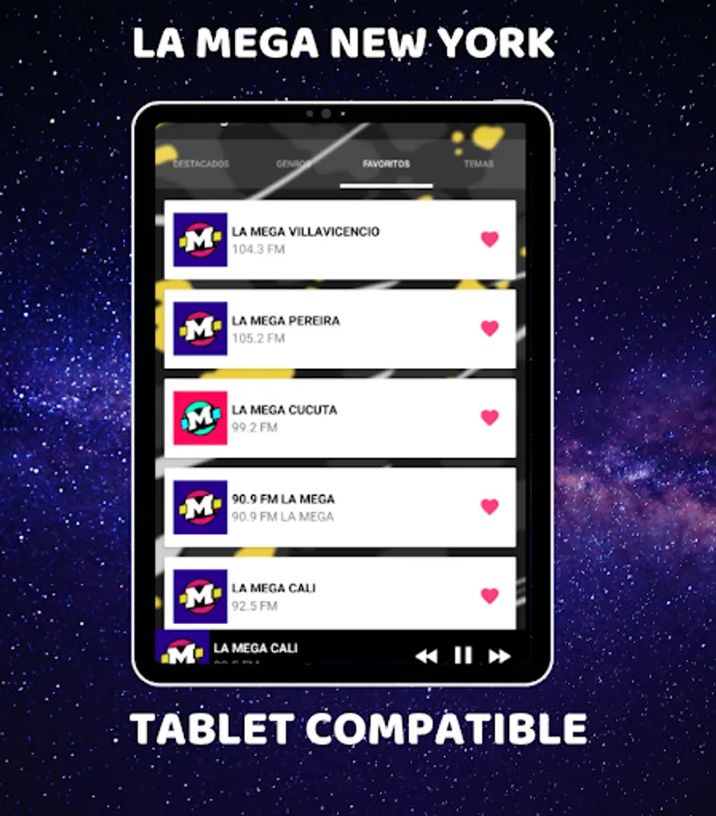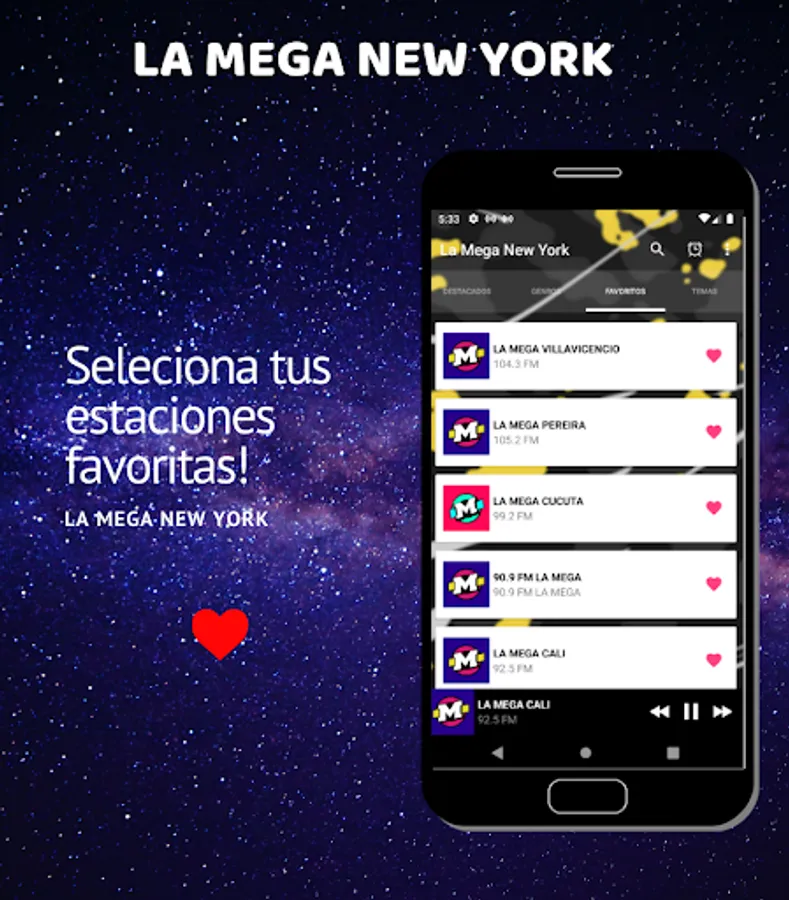 In our app La Mega 97.9 FM New York you will find the best current music, all the top music in the mega.