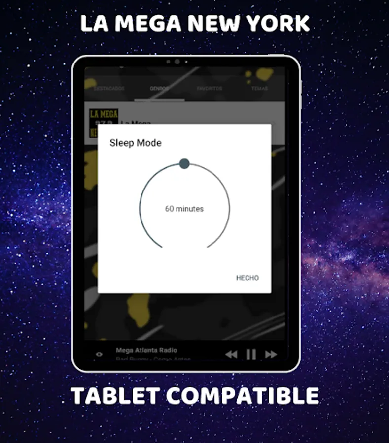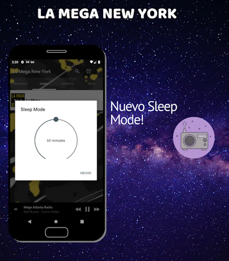 In addition, the Mega 97.9 New York contains a sleep mode so that you can set an alarm in which the application will be closed.