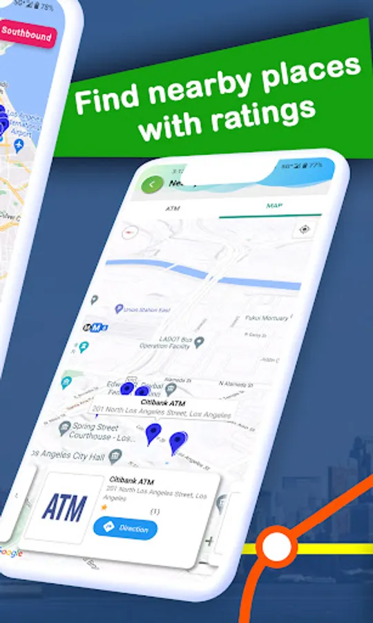 ♛Nearby Places : Now find all available nearby places like ATM, restaurants, car rentals along with latest ratings with Los Angeles Transit : LA Metro Bus tracker.