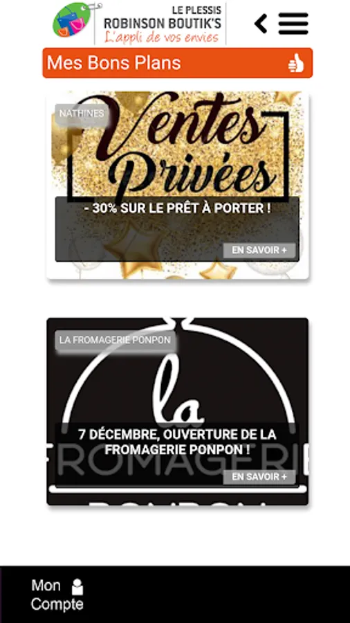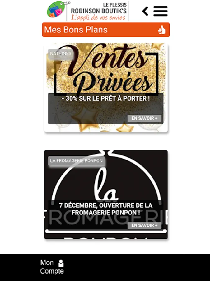 By registering on Le Plessis Robinson Boutik's you enter the privileged club of consumers who will receive by push notification personalized offers from merchants from whom you have collected loyalty points at least once.