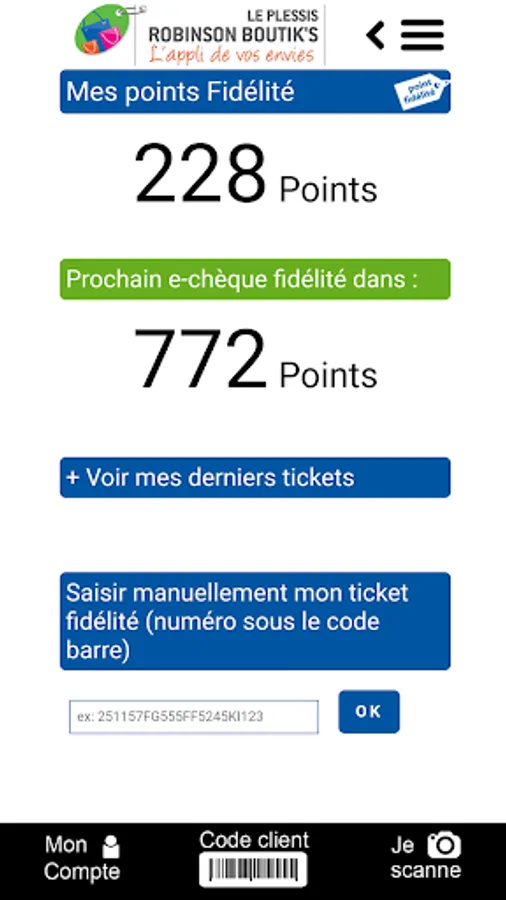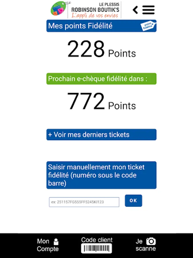 With each purchase in store ask for your loyalty points. Present your "customer code" on the screen of your smartphone to your merchant to collect your loyalty points.