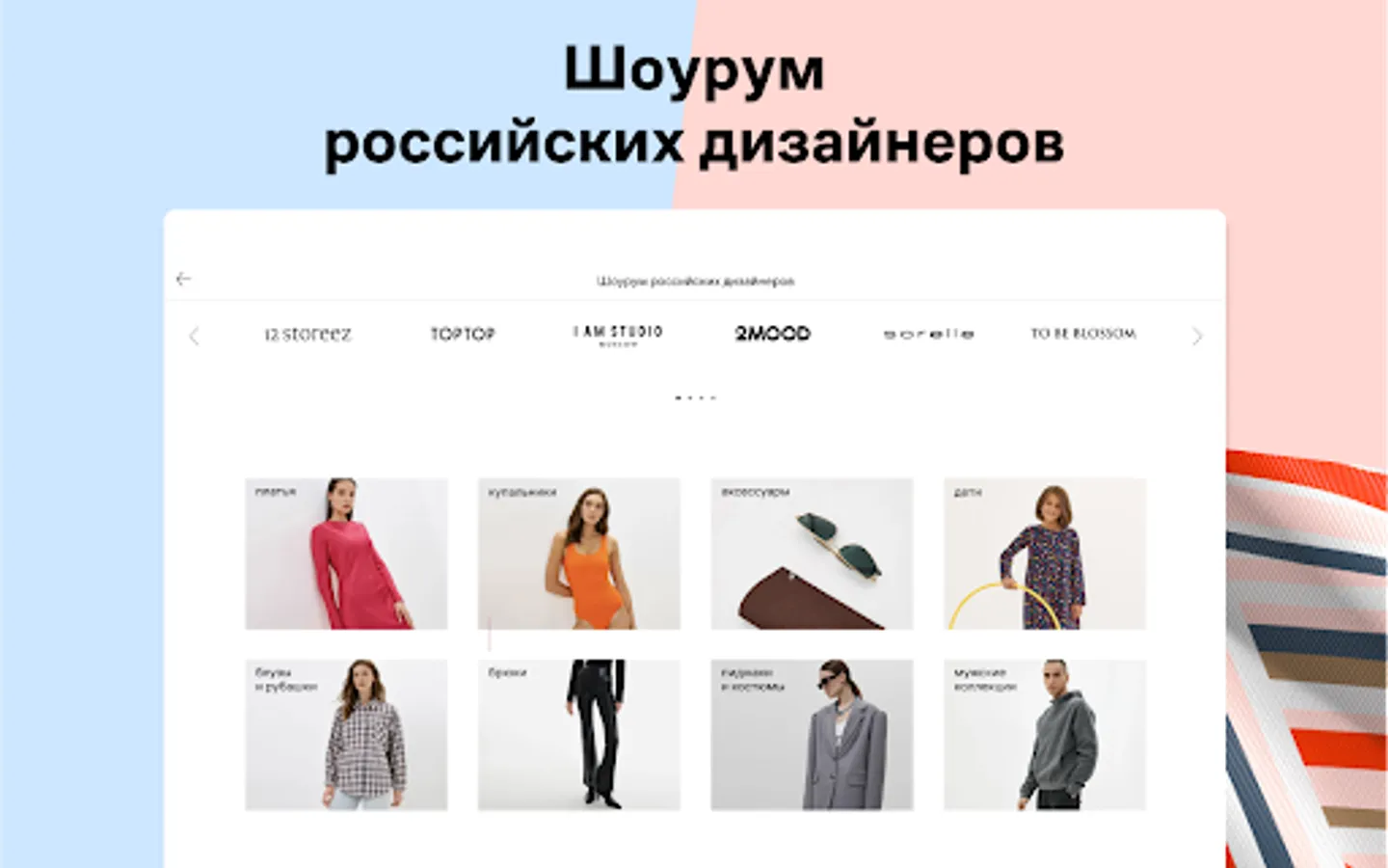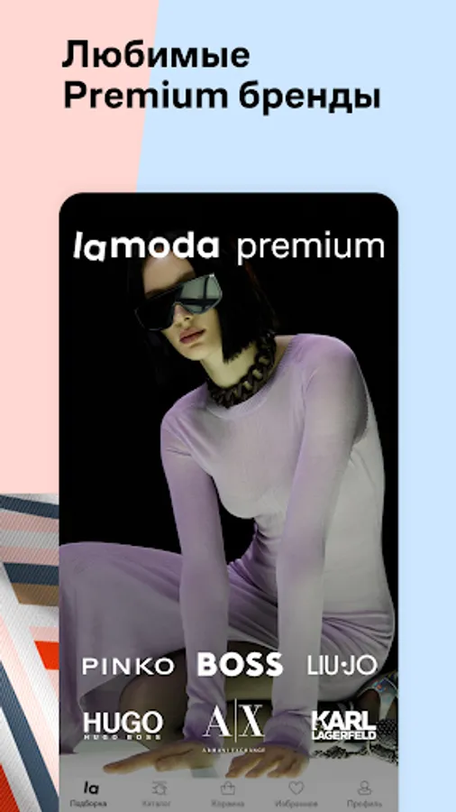 Lamoda is an online fashion shopping platform. It contains more than 10 million products from global and local brands: Uniqlo, Victoria`s secret, Lime, Baon, Calvin Klein Jeans, Dr. Martens, Finn Flare, Fred Perry, GAP, Jack & Jones, Intimissimi, Lacoste, Levi's, Mango, Marks & Spencer, Oodji, SELA, O'stin, Timberland, Tommy Hilfiger, United Colors of Benetton, Zarina, Boss, Hugo, Sandro, Maje, Ray Ban, Aeronautica Militare, Armani Exchange, Baldinini, Bikkembergs, Calvin Klein, Coach, Coccinelle, DKNY, Adidas, Puma, Nike, Befree, Ecco, Reebok, Love republic, T.Taccardi, Holy Land and others.