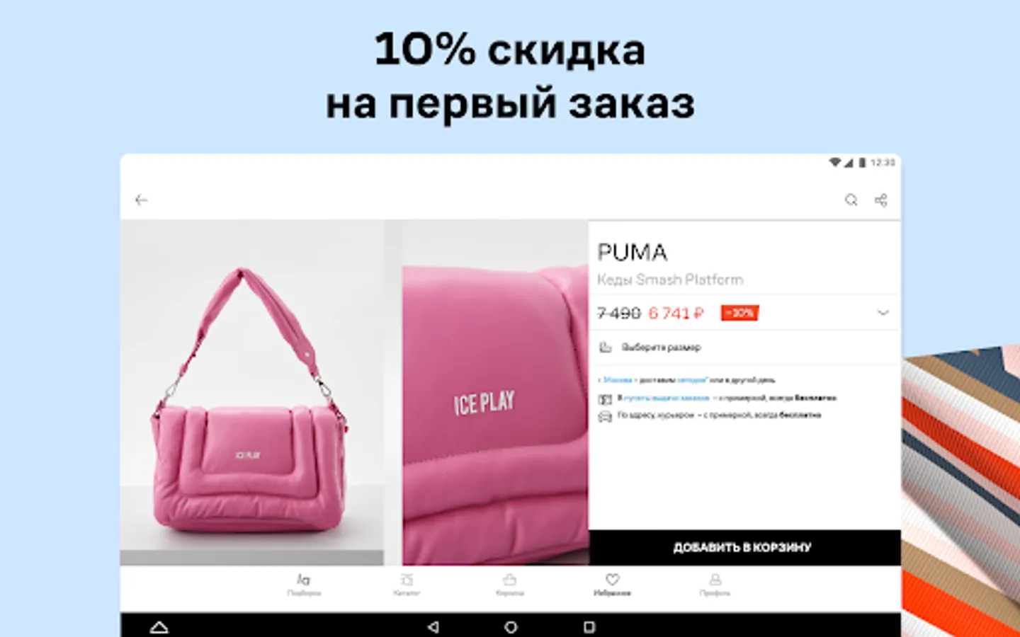 In the application, you can easily find the product even by the picture. Just upload a photo with the image you like and we will select similar clothes, shoes and accessories. Or use filters - by popularity, size, brand, color, price or discount. For sneakers and other shoes, the app has an AR fitting room.