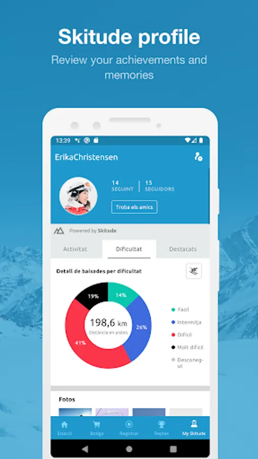 The App offers a range of features designed to optimize your experience before, during and after your trip. It’s very simple, plan your getaway and get real time updates on slope conditions. Set up your Skitude profile and track your activities on the slopes to get detailed stats about all your activities. And that’s not all, take part in challenges competing with the whole community, to be in with a chance of winning incredible prizes.
