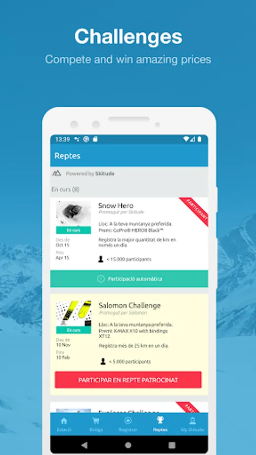 Set up your Skitude profile to track your activities using the GPS tracker. Find out where you are in the season's rankings and try to complete the challenges to be in with a chance of winning great prizes.
