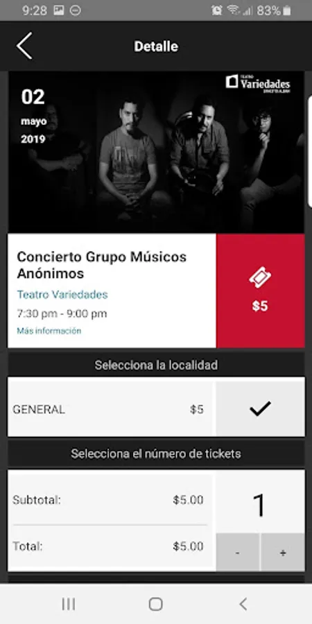 Application for the sale of online tickets for the events of the Fundación Teatro Nacional Sucre. You can buy tickets for the Sucre, Variedades and México theaters. You can make your payments by credit or debit card