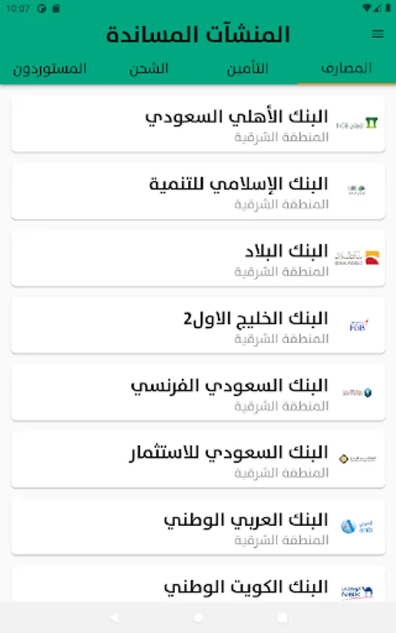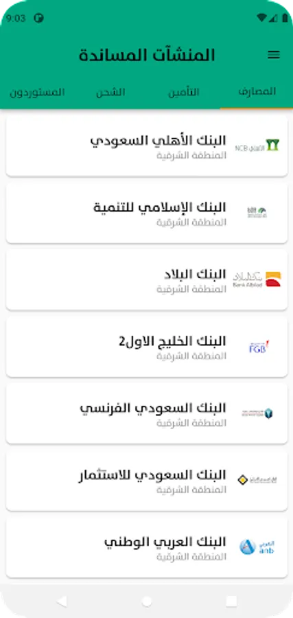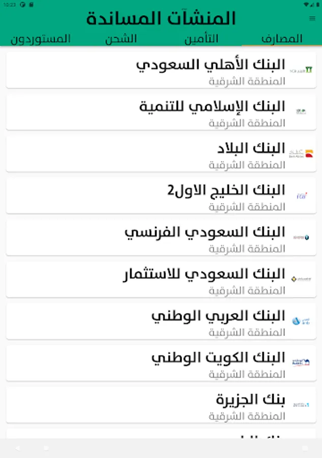 Supporting facilities directory (banks - insurance - shipping and transportation