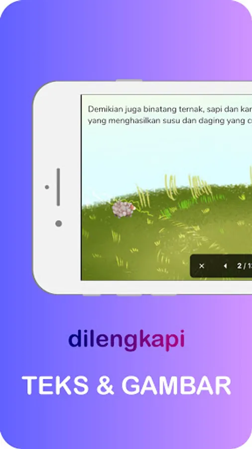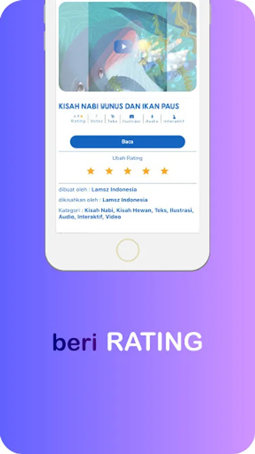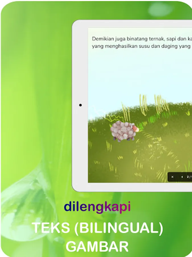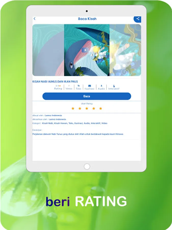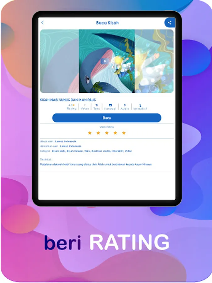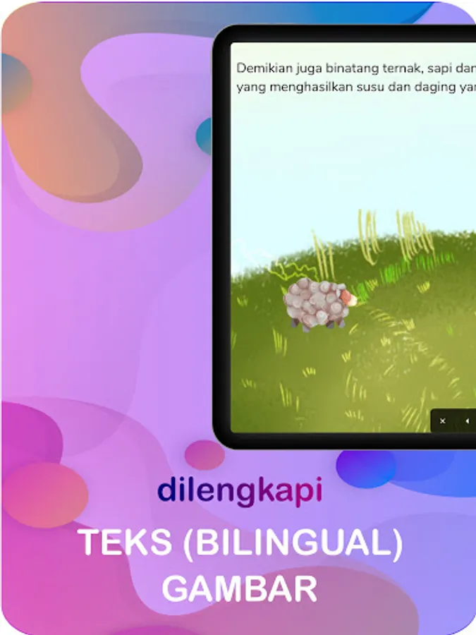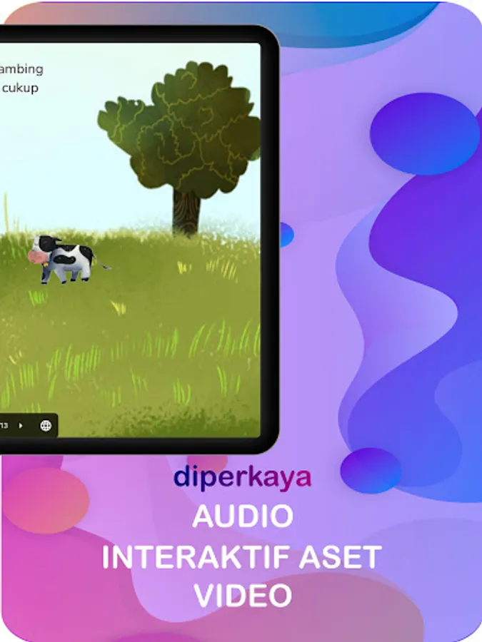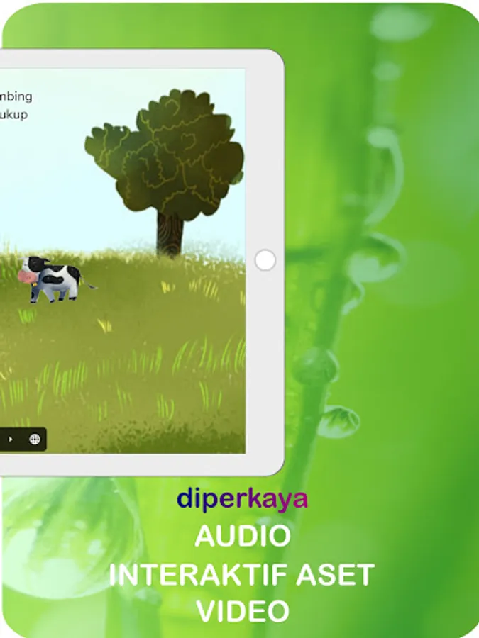 It has simple interactivity and fun learning materials, videos, audiobook option in bahasa and english