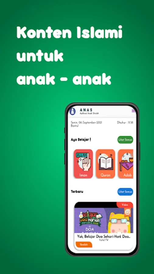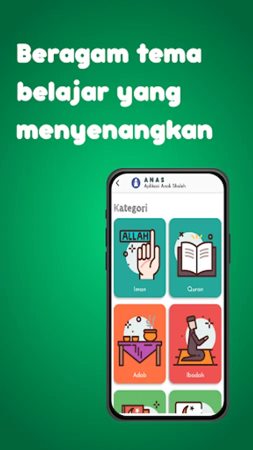 A N A S is an application for your children that contains a compilation of Islamic content from various resources that are already available on the internet. These Islamic contents are grouped according to the age restrictions of your children and also certain topics of discussion that you feel need to be introduced to your children.
