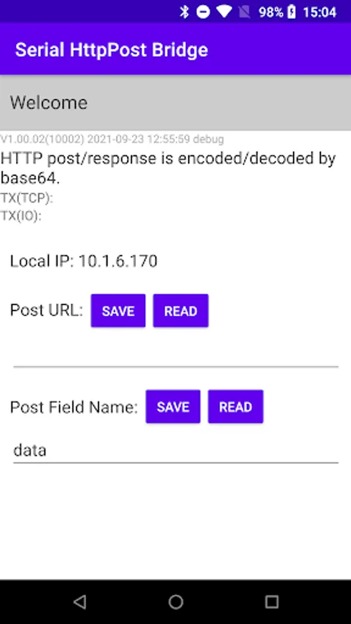 Serial HTTP post bridge provides serial to HTTP post bridge. The data from serial is encoded to base64 and send by HTTP post. The response data from HTTP response is expected to be base64 encoded. Serial HTTP post bridge is then decoded from base64 and sends back to usb serial.