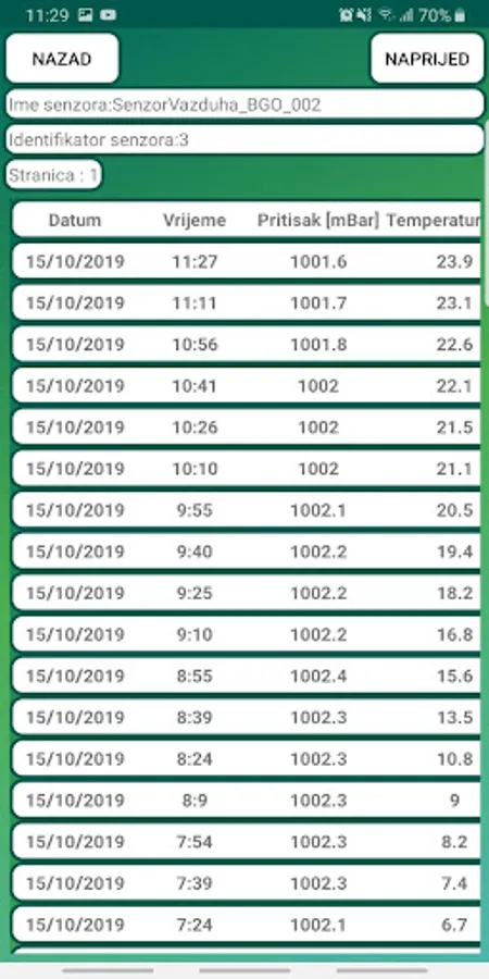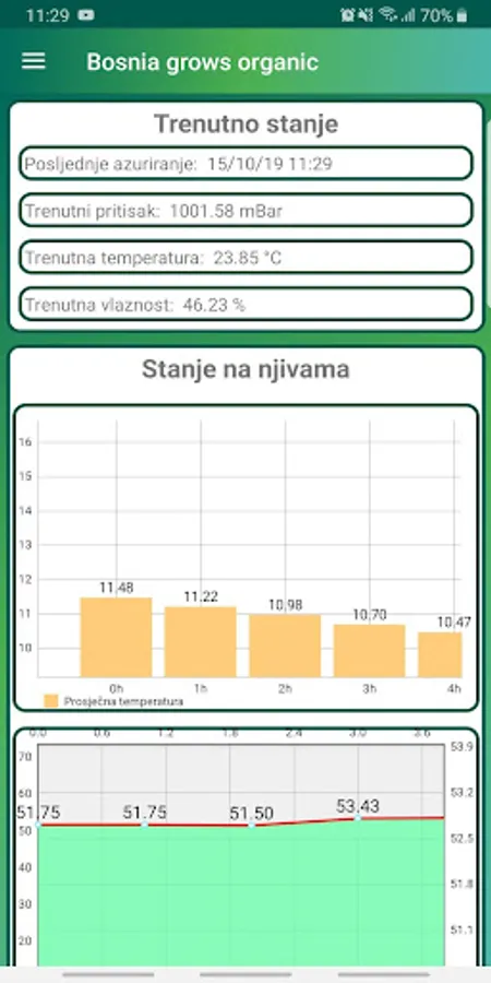 Application is tracking parameters such as temperature, humidity and air pressure in air or soil.