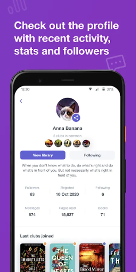 - Profile with stats and the opportunity to see what others are reading