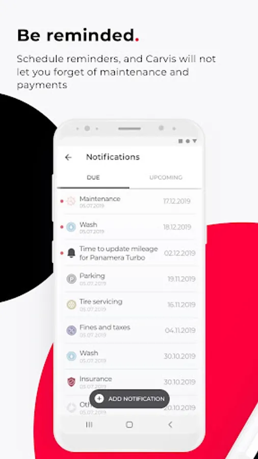 Ever been stuck on a forest road with no one to help because you forgot about some car repairs? Won’t ever happen to you with Carvis. The app will remind you of everything you need to do about the car.