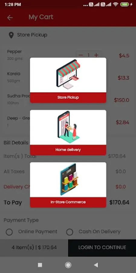 Select all your groceries/service and add them to the cart.