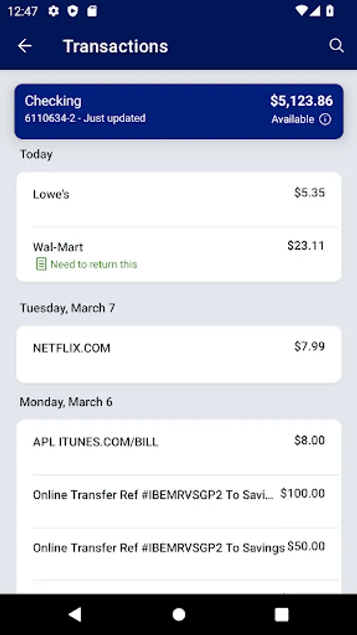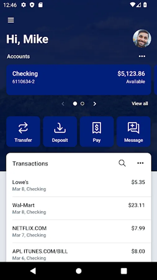 • Quickly view balances, recent transactions, bill payments and more on your dashboard.