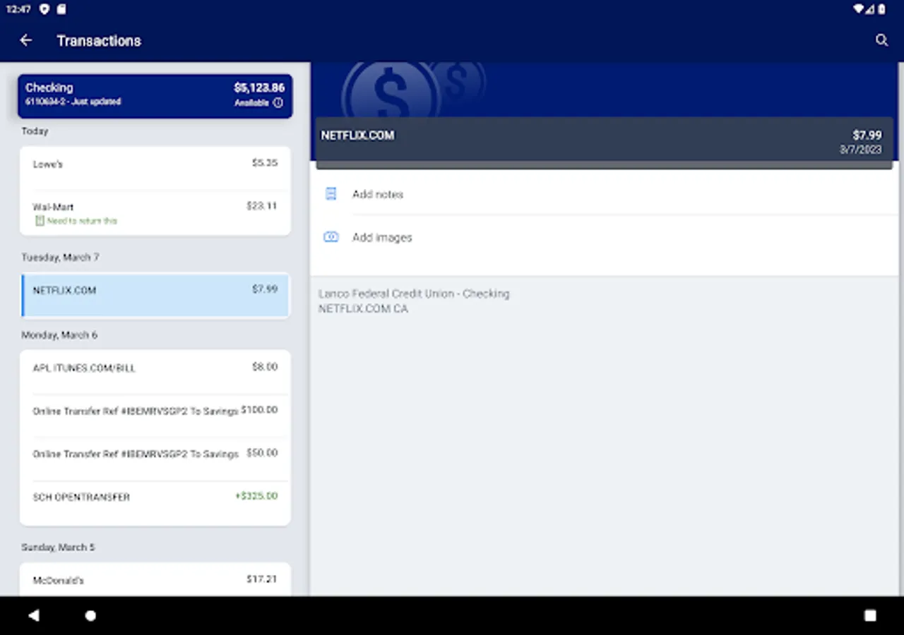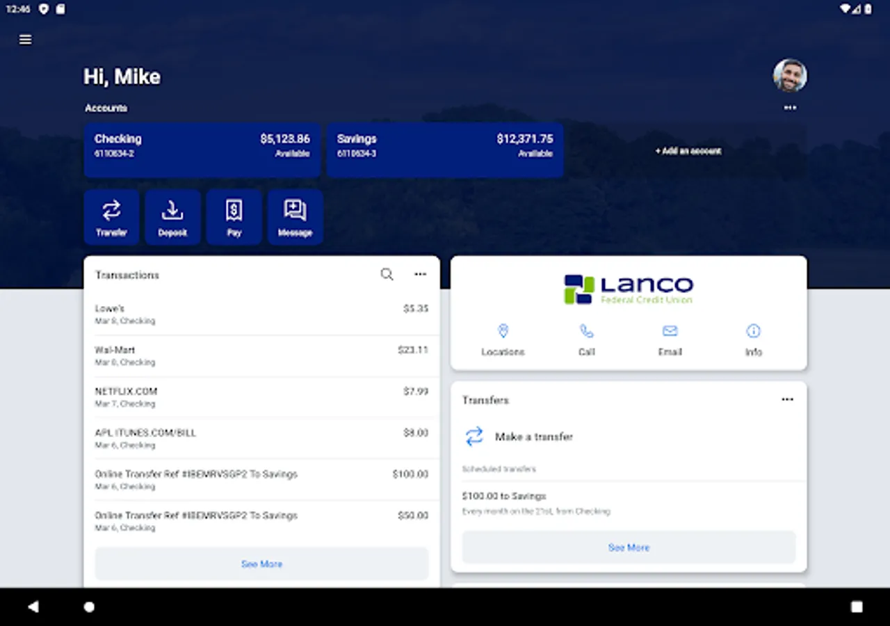 • Easily switch between profiles to manage multiple Lanco FCU memberships.