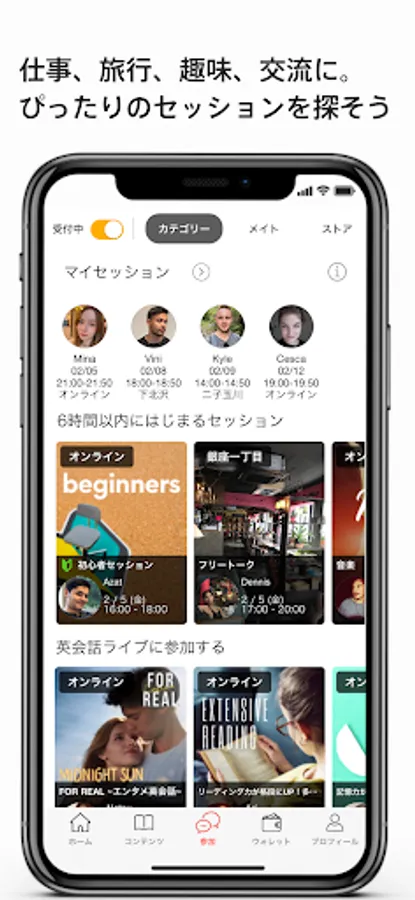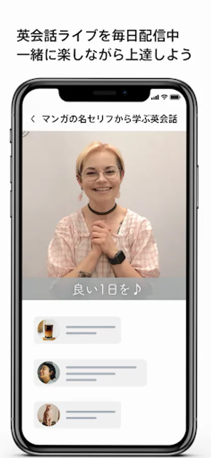 Learn from your favorite "English Conversation Live" from the app, join the "English Conversation Cafe" with a drink, and enjoy your daily life even more.