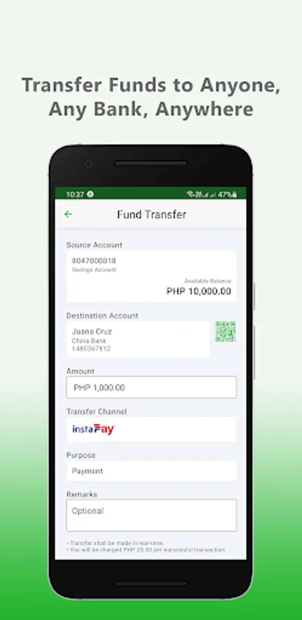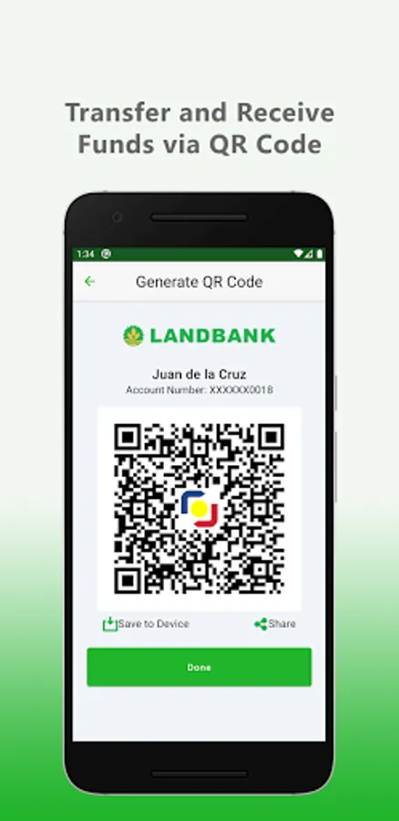 • Transfer funds to other LANDBANK and OFBank accounts, or to other banks via InstaPay and PESONet. Use QR codes for quicker, more accurate transfers.