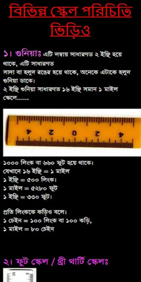 ফুট স্কেলের সাথে গুনিয়া বা গান্টার স্কেল বা লিংক স্কেলের সম্পর্ক কিঃ