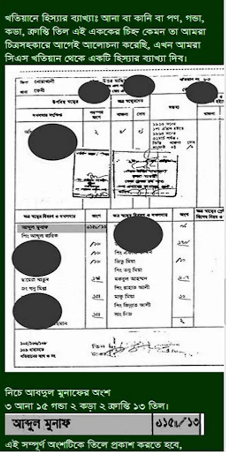 সিএস খতিয়ান দলিল পরিচিতি ও হিস্যাঃ