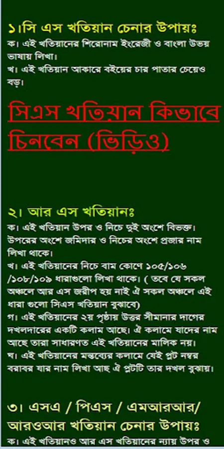 ১।সি এস খতিয়ান চেনার উপায়ঃ