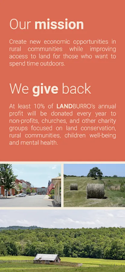 LandBurro was created to make a difference - whether in the life of a landowner, outdoor enthusiast, or child - we’re in pursuit to make your life better. The pursuit to make the life of others better doesn’t stop here, at least 10% of LandBurro's annual profit will be donated every year to non-profits, churches, and other charity groups focused on land conservation, rural communities, children well-being and mental health.