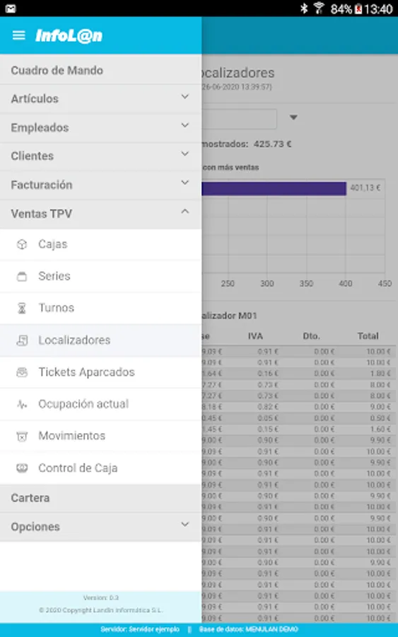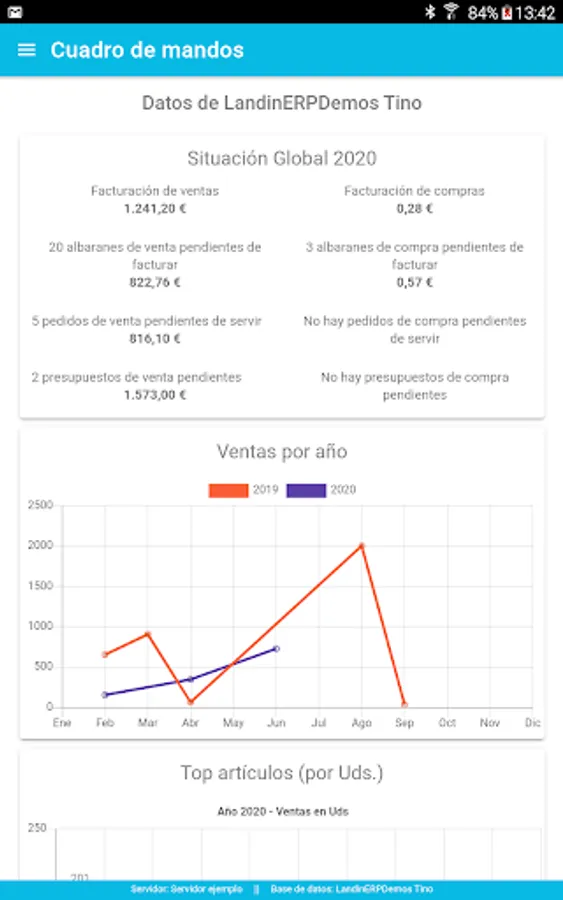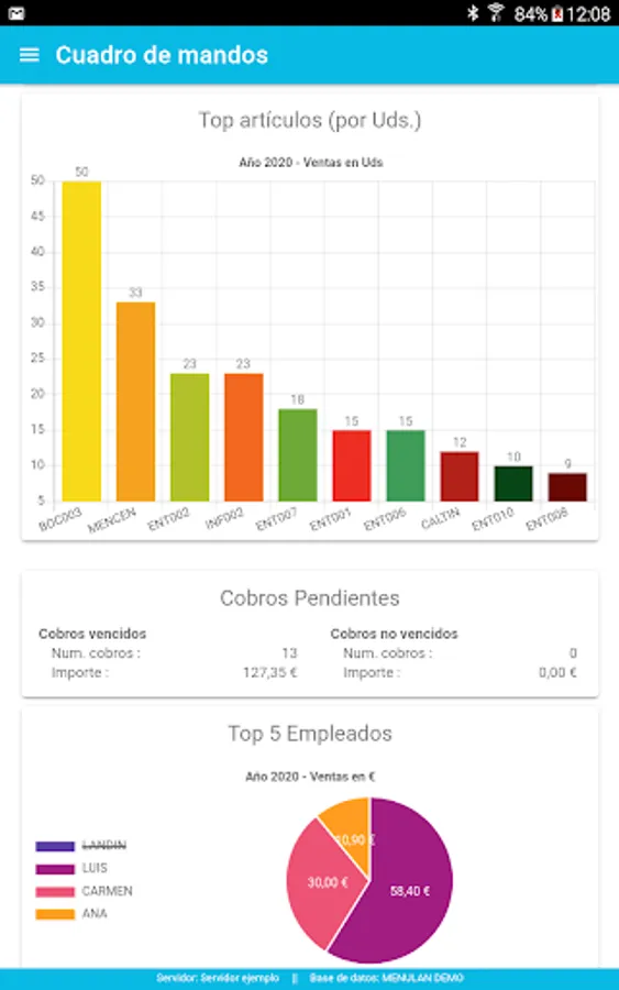 Dashboard for quick and intuitive consultation of the state of your business through graphs, tables, data and statistics of all kinds.