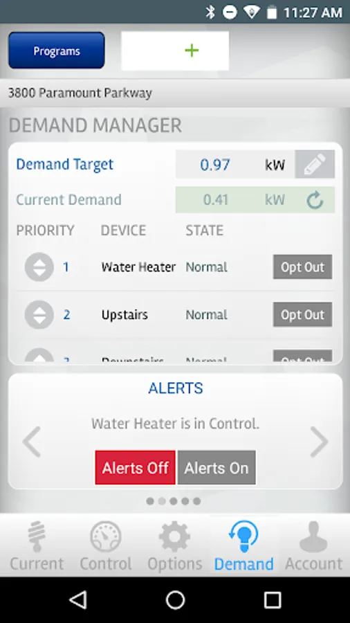 You can make adjustments to your thermostat, turn your water heater on or off, and even switch between preset programs, as well as monitor your usage in real time.