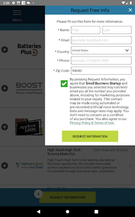 All info you receive is 100% free of cost, and we never share your info with anyone other than the company you request info from. This is a must have small business app for anyone interested in entrepreneurship.