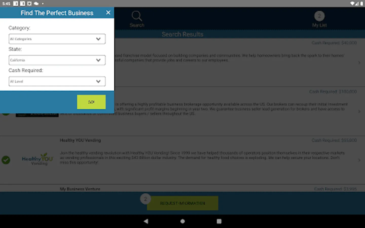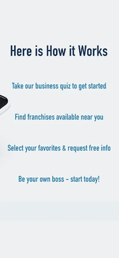 After a quick startup quiz to understand your entrepreneurship goals, our unique app matches your interests with popular opportunities, based on choice by other entrepreneurs just like you. Compare business ideas, choose YOUR favorites, and contact businesses directly through the app.