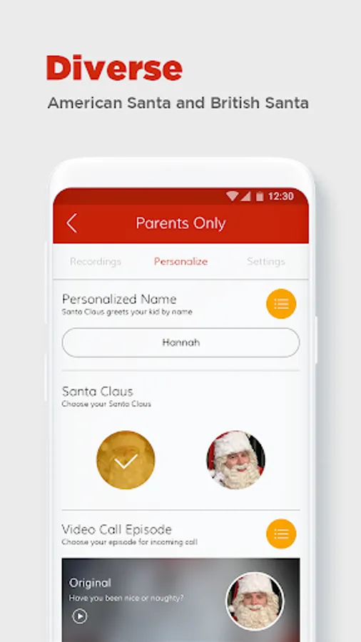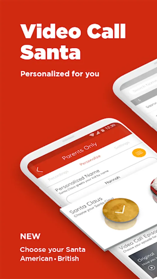 • Choose your Santa to simulate a call: American or British