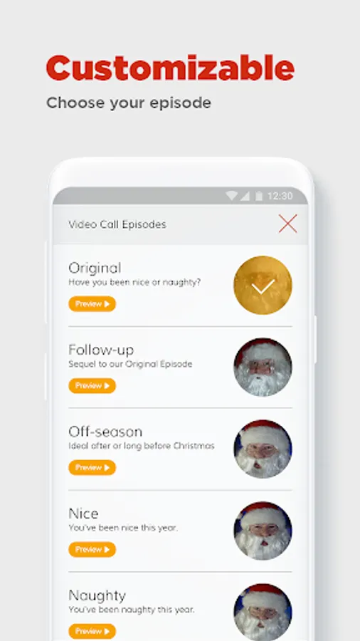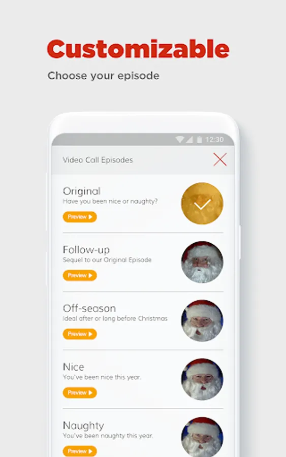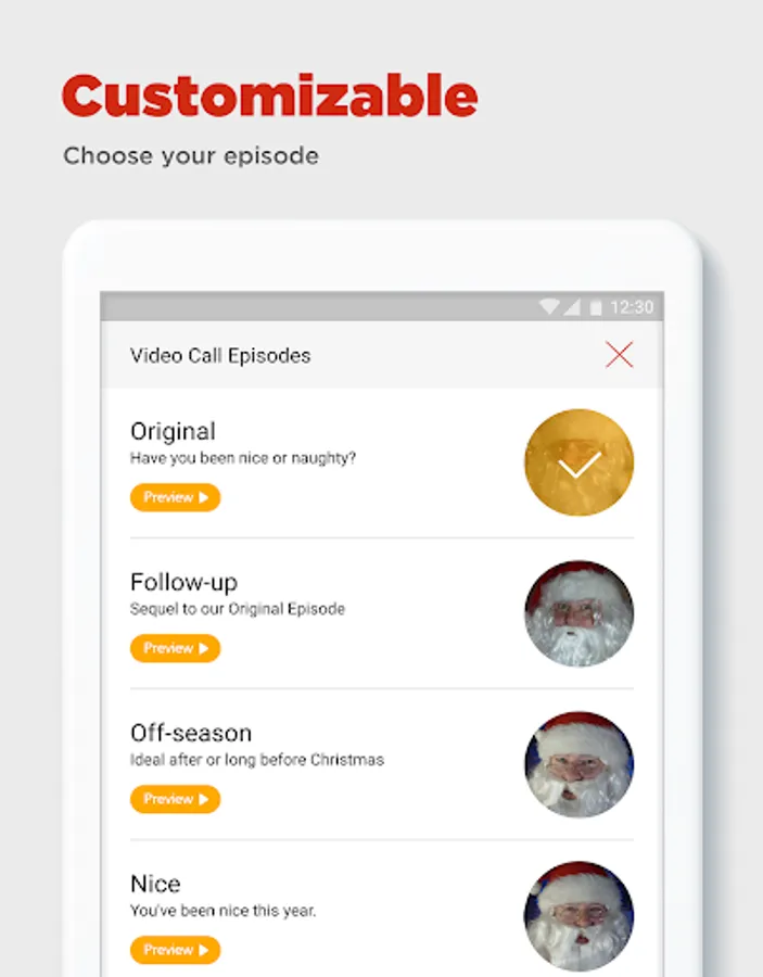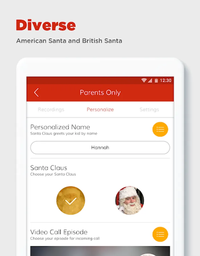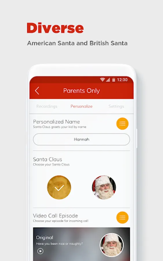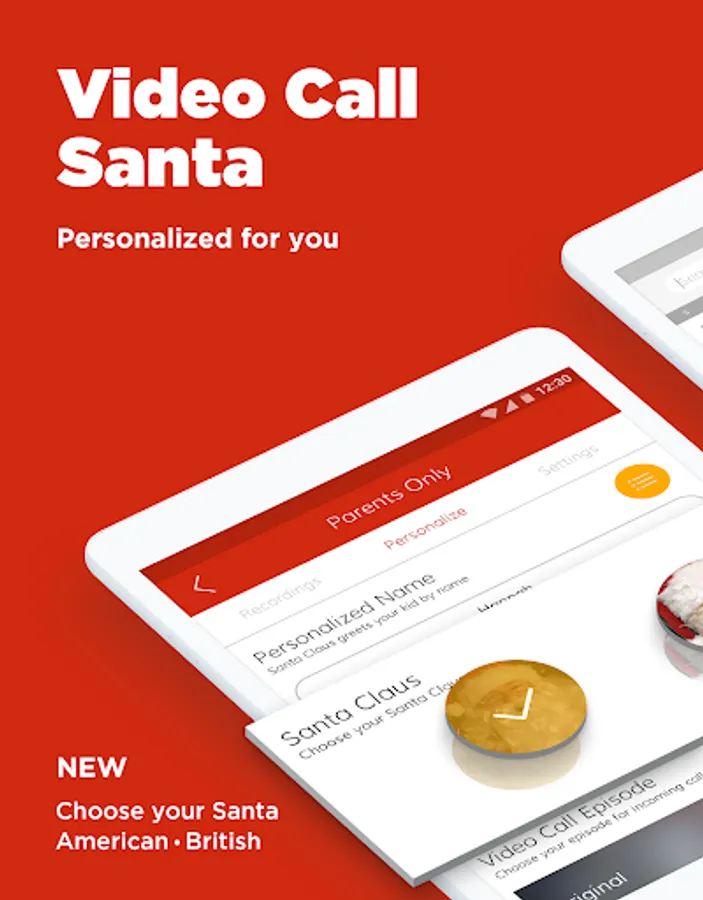 • Let Santa greet your child by name when simulated incoming call comes in