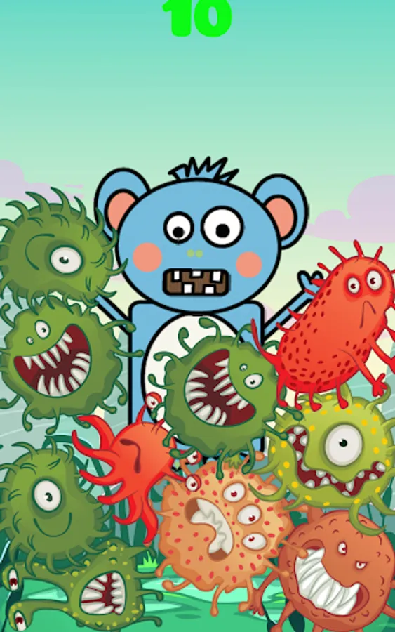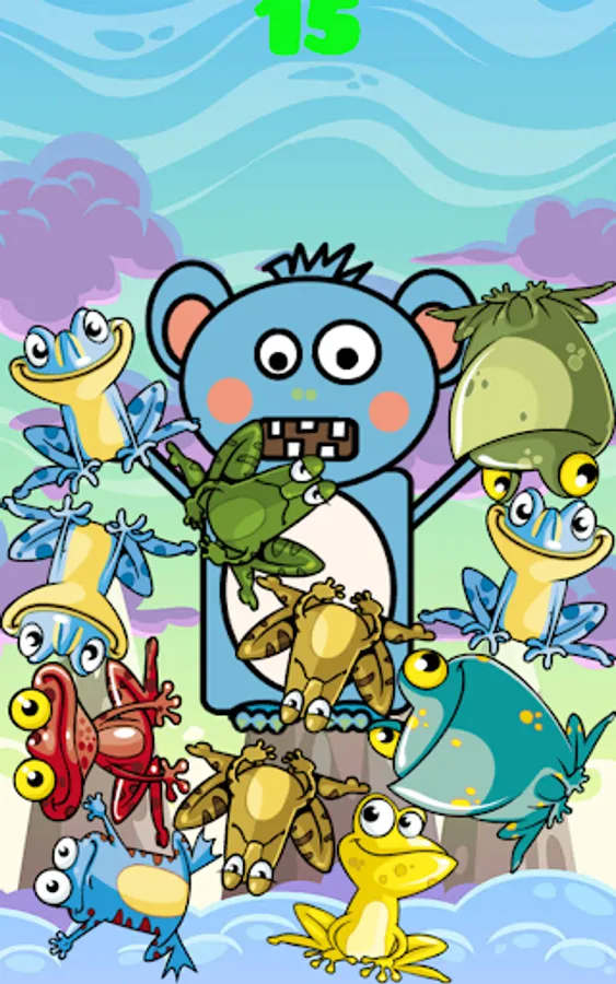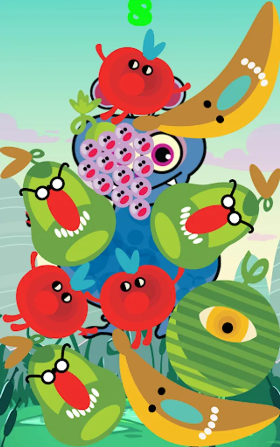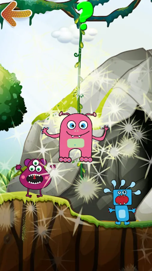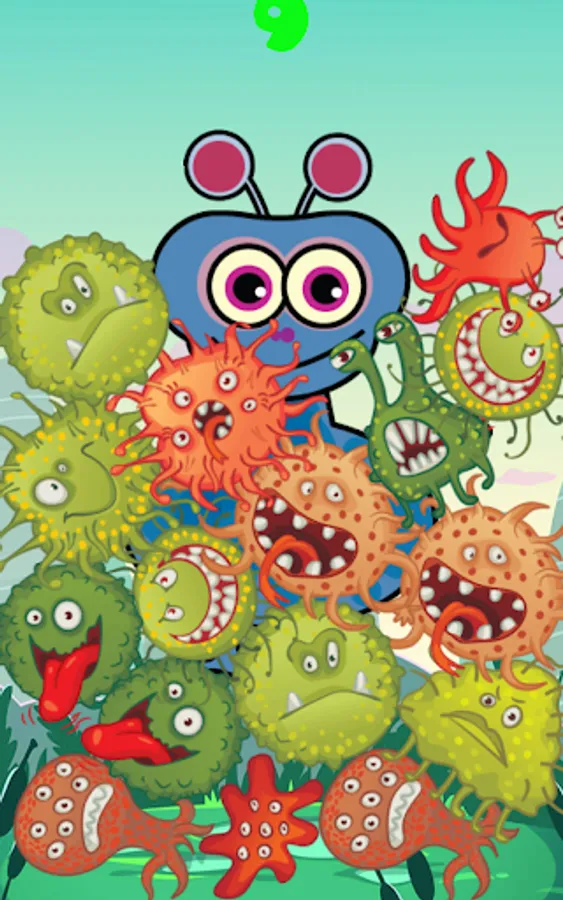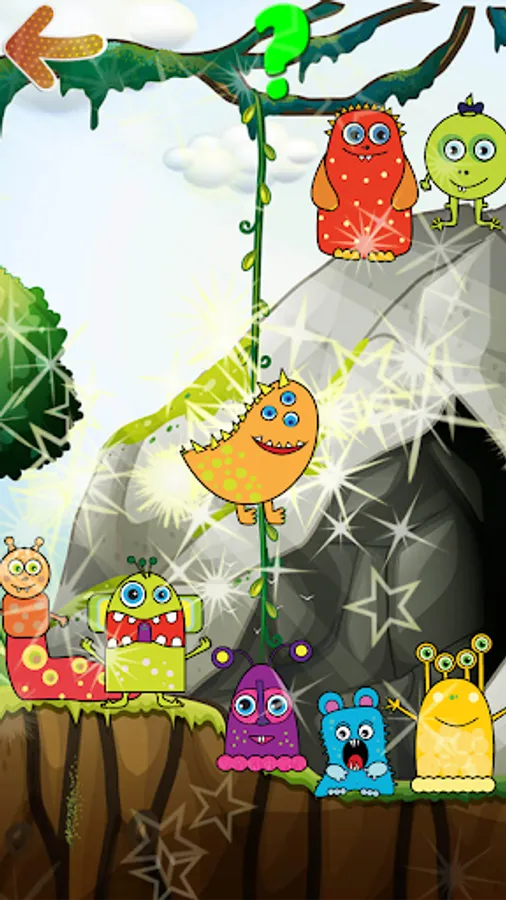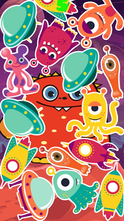 First, your child selects a friendly monster, and then your child pops the falling objects as fast as possible! The objects start off large and slow, but as your child completes more monsters, the objects get smaller and faster. Completed monster are put in a jungle where they can be played with.